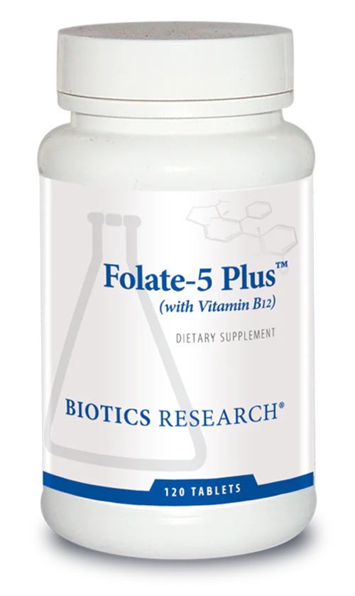 Folate-5 Plus™ supplies calcium folinate, along with vitamin B12 and the antioxidant enzymes SOD and catalase. This high potency product is appropriate when supplemental folate is warranted. Folate is required for the synthesis of the neurotransmitters dopamine, epinephrine and serotonin. It is important for healthy fetal development as well as maintaining healthy homocysteine levels. Folate is also correlated to the expression of proteins involved in the activation and regulation of immune function.